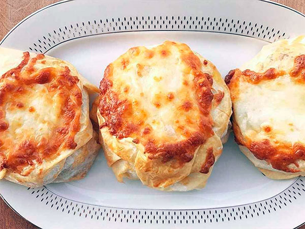 4. Замачивание: Аккуратно залейте горячий бульон на лаваш в форме для запекания. Повторяйте, пока все кусочки не станут мягкими и пропитанными. Следите, чтобы лаваш не размок слишком сильно.